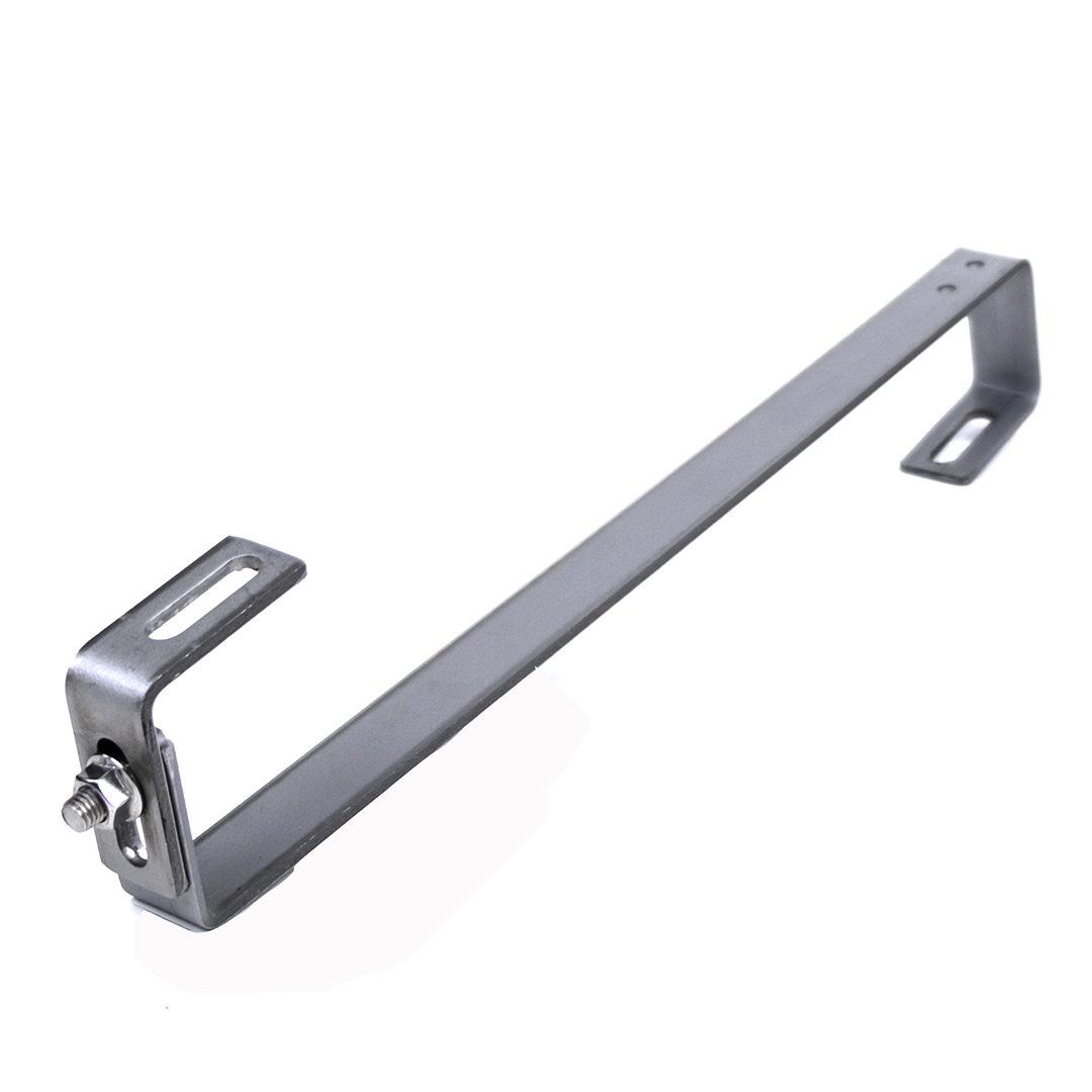 Crochet de Toit S Réglable pour toitures inclinées, acier inoxydable 1.4016 de dimensions 470x30x4mm avec trou M10 pour profilé destiné aux systèmes photovoltaïques.
