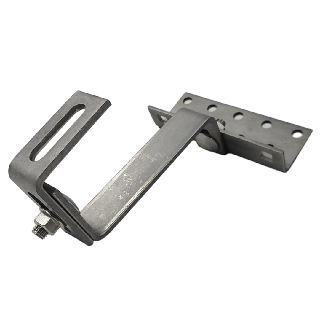 Crochet de toiture Vario type 4-5-5 réglable, acier inoxydable H17/1.4016, dimensions 145x30x5/5mm/4mm avec trou M10 pour profilé destiné aux systèmes photovoltaïques.