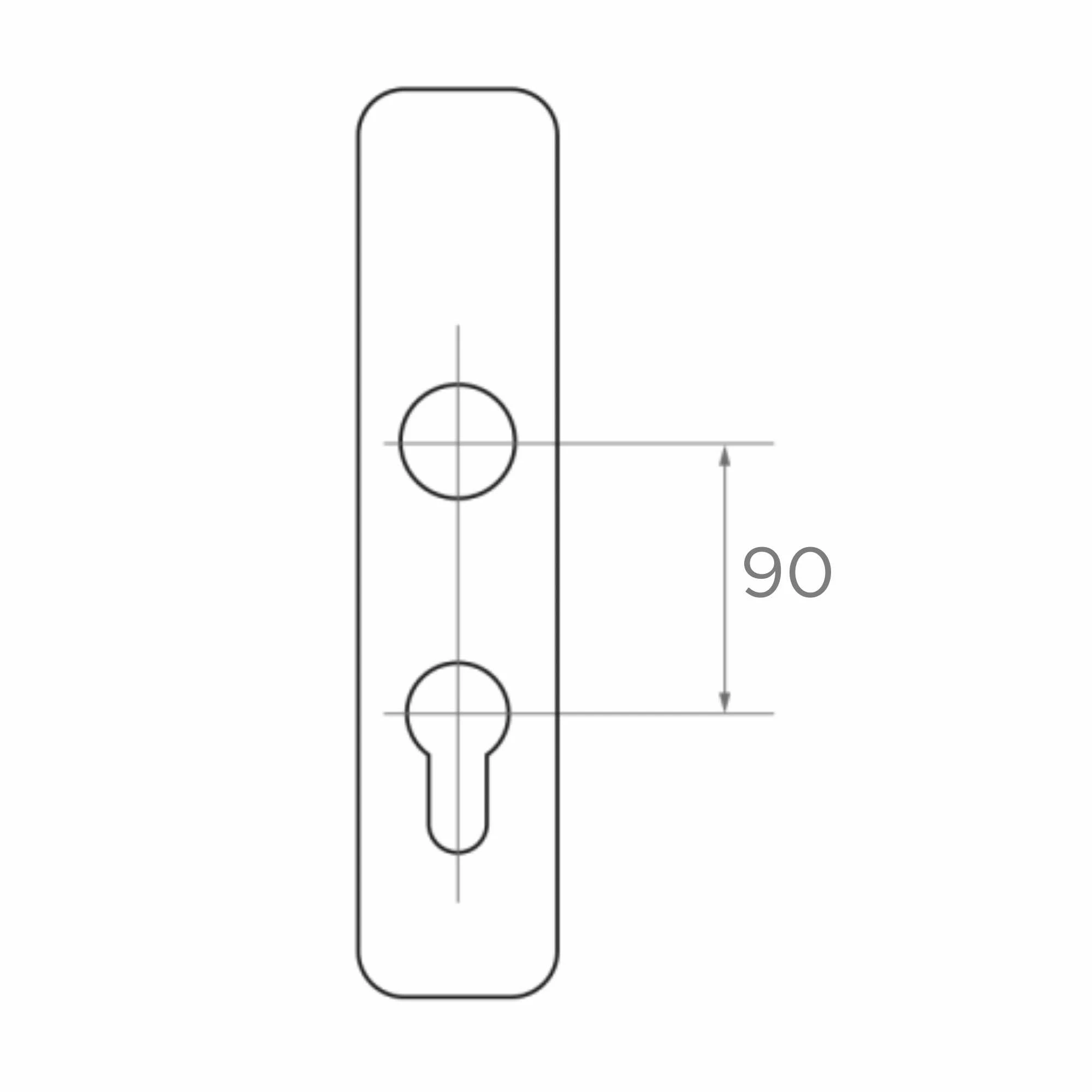 - Entraxe PZ (axe poignée – axe cylindre) : 90 mm