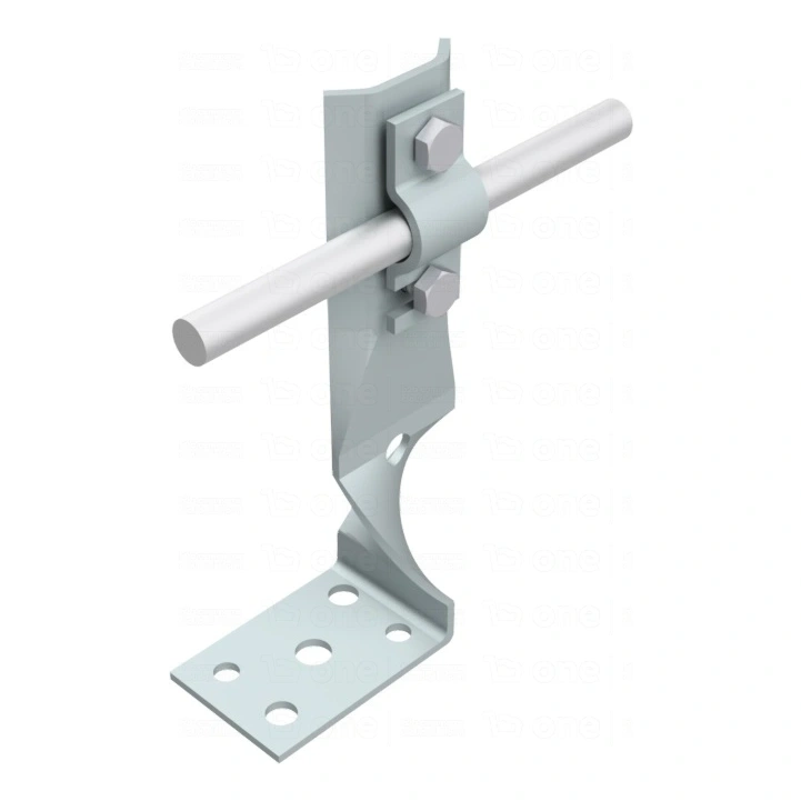 Application universelle. Le support convient aux supports maçonnés, en bois ainsi qu'aux toitures couvertes de tôle, de bardeaux ou de membrane bitumineuse. Le montage s'effectue à l'aide de vis, de chevilles d'expansion ou de rivets — la platine de base dispose d'orifices de montage permettant une fixation rapide et sûre sur différentes surfaces.
