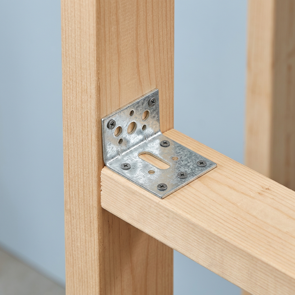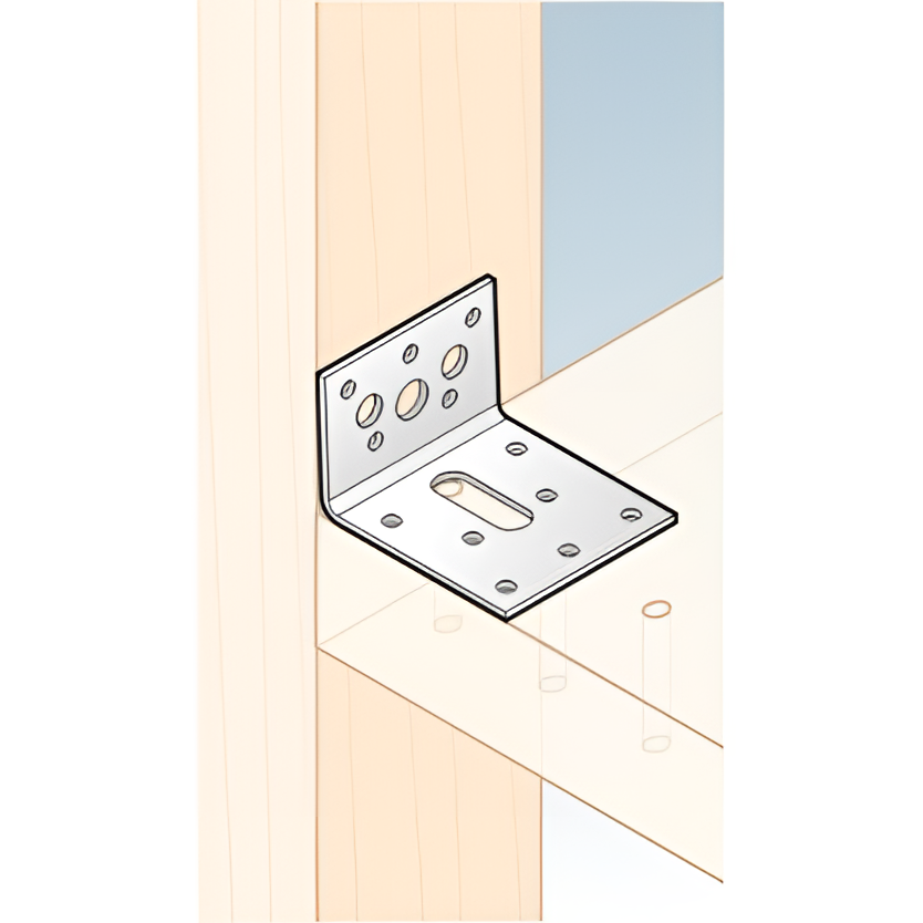 Le revêtement de zinc Z275 (galvanisation à chaud) assure une haute résistance à la corrosion, ce qui permet d'utiliser l'équerre aussi bien à l'intérieur qu'à l'extérieur des bâtiments — dans des conditions d'humidité élevée typiques des charpentes, pergolas ou terrasses.