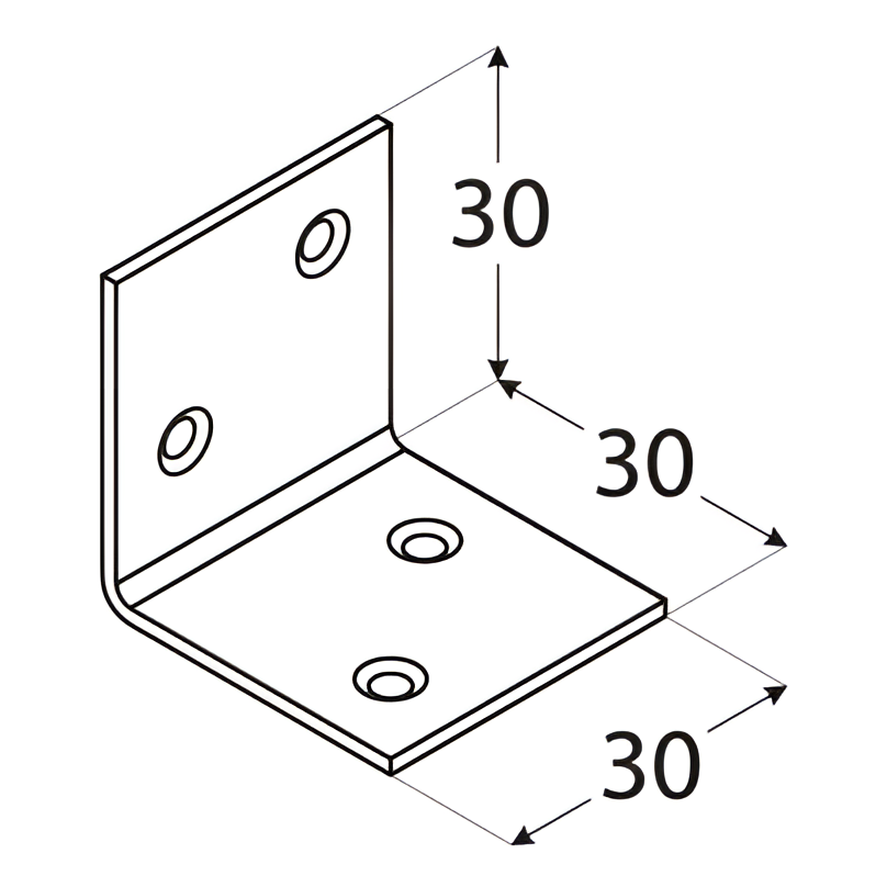 Les quatre trous de montage (ø4,5 mm) – deux par aile – garantissent un transfert stable et uniforme des charges dans l'assemblage d'angle.