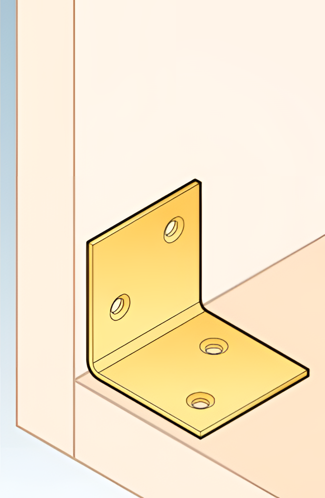 L'équerre peut être fixée à l'aide de différents types de fixations, ce qui permet d'adapter la méthode de pose à la nature du support et aux exigences constructives :