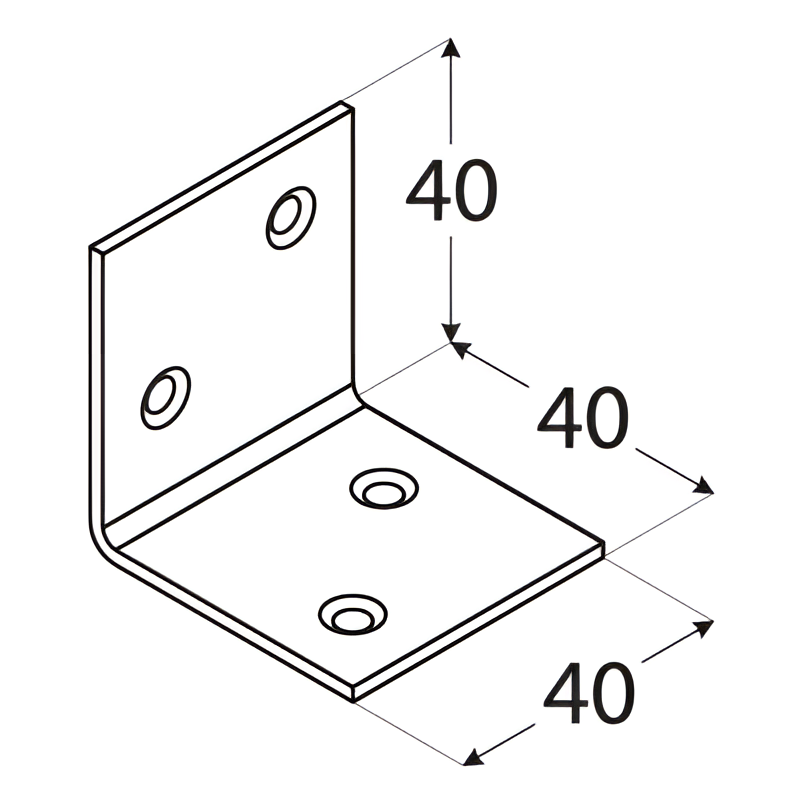 Grâce à ses ailes égales de 40×40×40 mm, cette équerre est idéale partout où un assemblage perpendiculaire solide entre éléments en bois est requis. Les différentes largeurs disponibles dans la gamme permettent de choisir le connecteur adapté aussi bien aux chants étroits qu'aux faces larges des planches et panneaux de meuble.