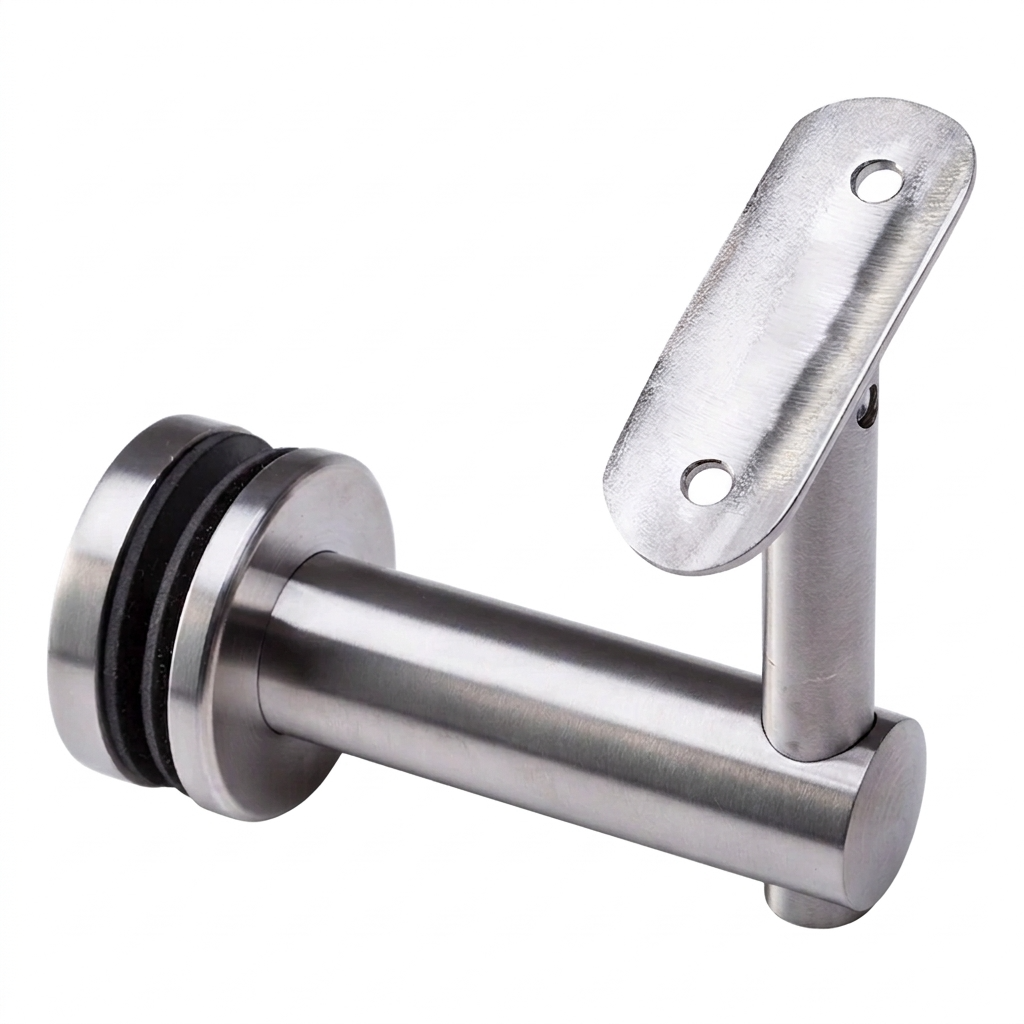 Support articulé de main courante pour verre avec fixation ponctuelle — élément fiable des balustrades vitrées dans le système de tube Ø 42,4 mm. Grâce à sa construction articulée, il permet un réglage fluide de l'angle d'inclinaison de l'assise, ce qui permet d'adapter la main courante aux escaliers, rampes et balcons sans nécessité d'utiliser des adaptateurs supplémentaires. Fabriqué en acier inoxydable AISI 304 avec finition satinée — résistant à la corrosion et facile à entretenir, convient tant au montage intérieur qu'extérieur.
