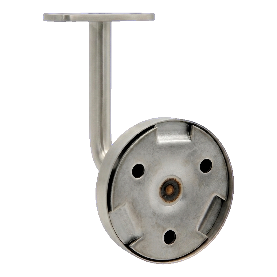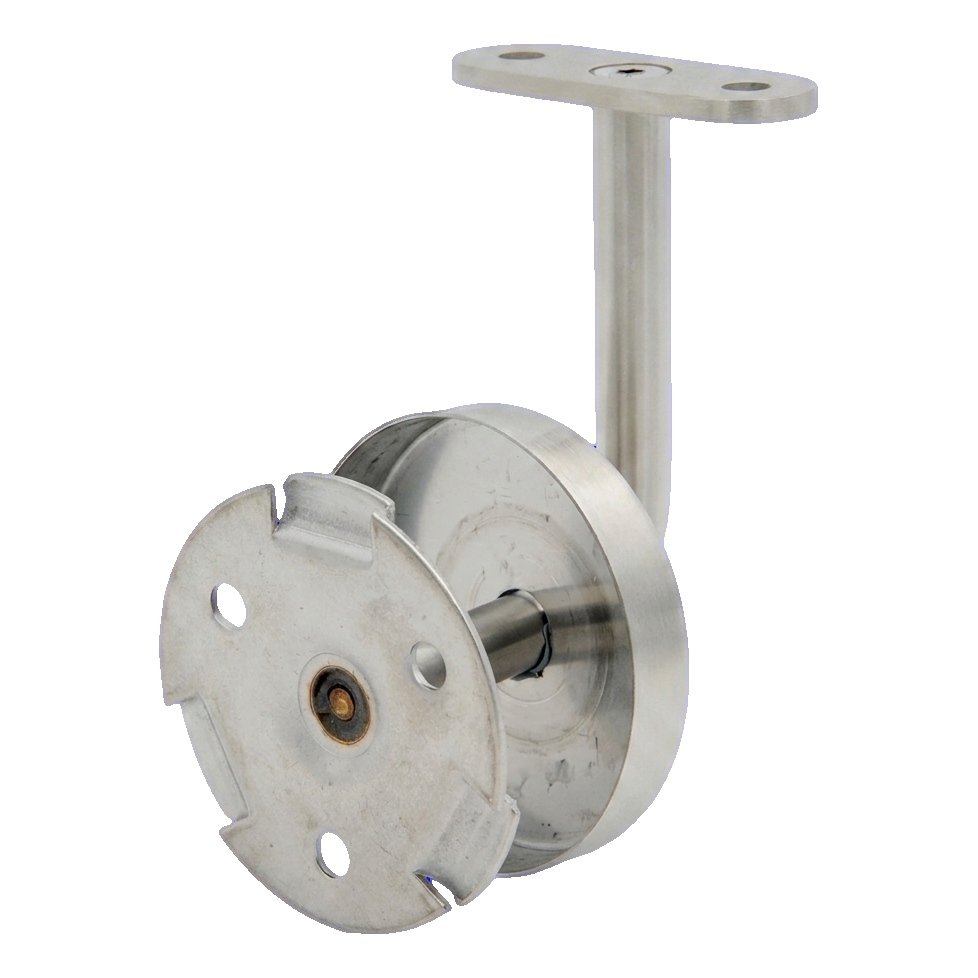 Trois trous de montage dans la plaque murale assurent un montage rapide et précis. La plaque de fixation de main-courante (étrier) permet un positionnement sûr de la main-courante à section plate. La rosace murale se place sur la plaque, recouvrant les points de fixation et donnant à l'installation un aspect professionnel.