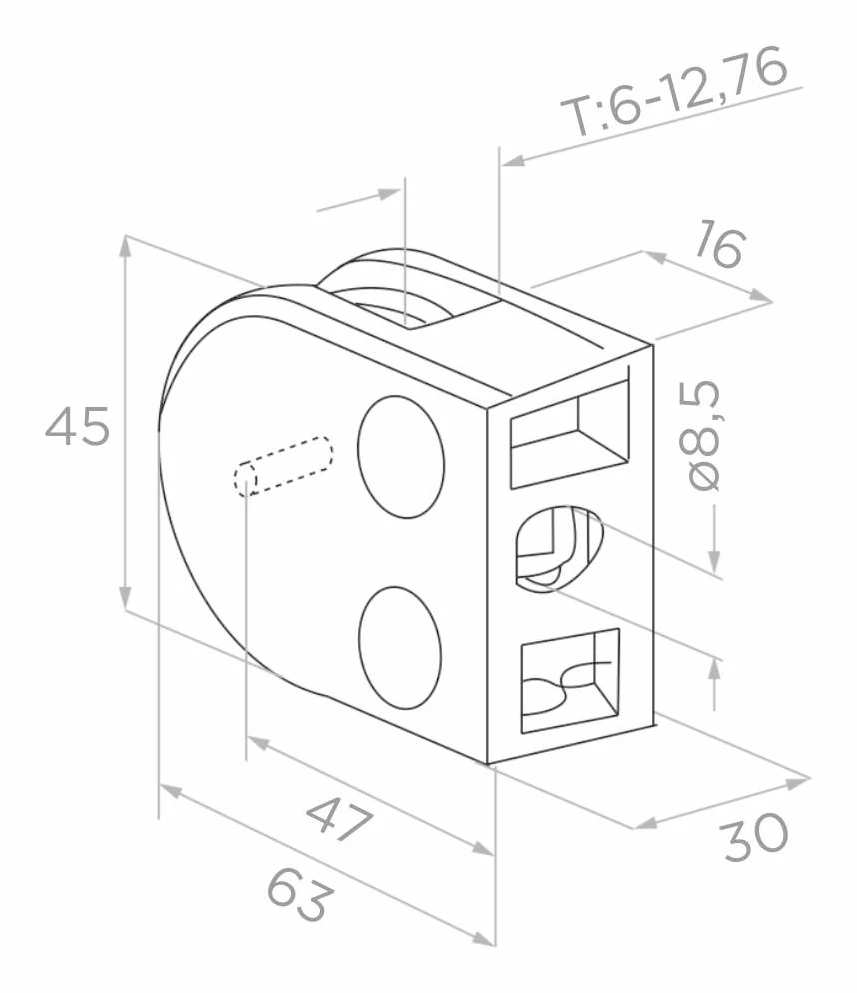 Fixation pour verre arrondie, conçue pour les garde-corps vitrés et entièrement vitrés. Elle assure le maintien stable des panneaux de verre d'une épaisseur de 6 à 12,76 mm et les protège contre tout glissement grâce à la goupille de sécurité incluse. Fabriquée en acier inoxydable AISI 304 avec finition satinée — elle résiste à la corrosion et convient aussi bien aux applications intérieures qu'extérieures.