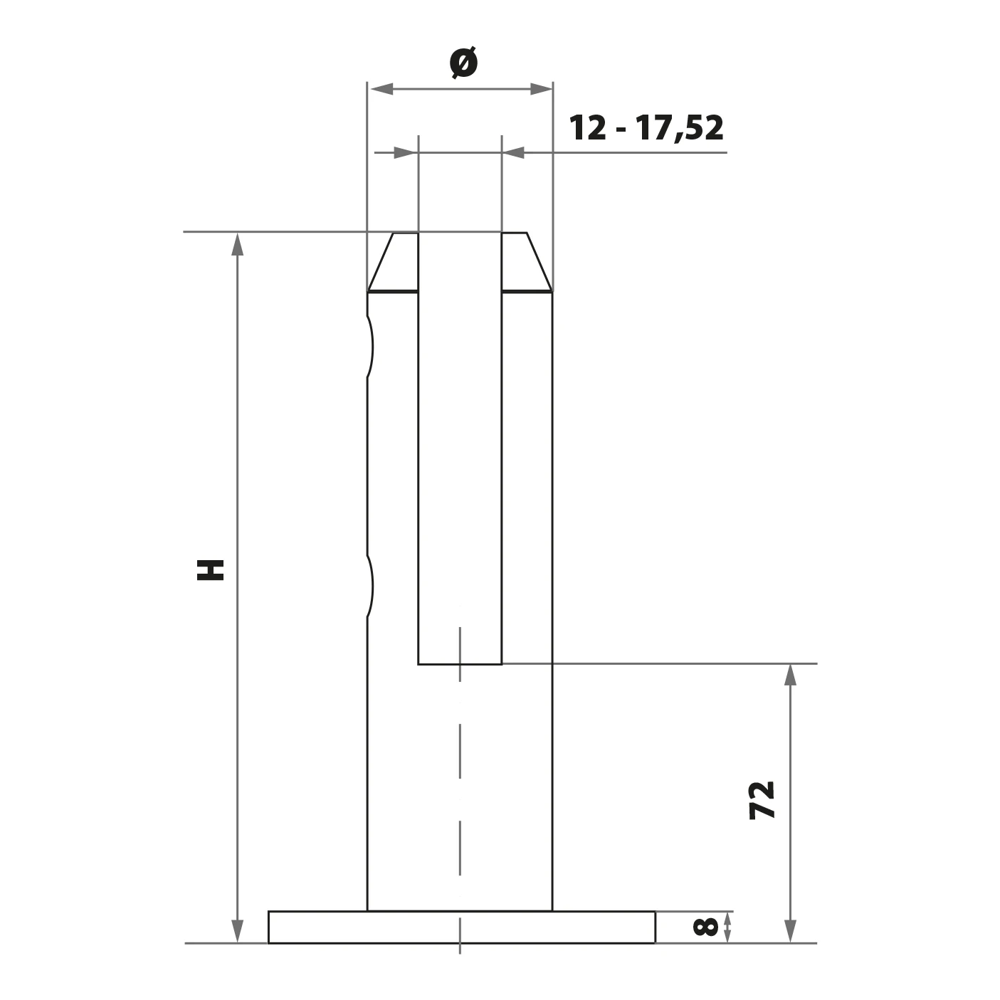 - Profondeur d'insertion du verre : 72 mm (du bord inférieur de la base au fond de la fente)