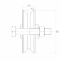 Le galet est fabriqué en acier galvanisé, ce qui garantit une haute résistance à la corrosion et une exploitation de plusieurs années dans des conditions extérieures. Le roulement à billes intégré assure des résistances au roulement minimales, ce qui se traduit par un mouvement léger et sans défaillance du portail. La capacité maximale de 250 kg permet d'utiliser le galet aussi bien pour des portails légers que pour des constructions coulissantes moyennement chargées.