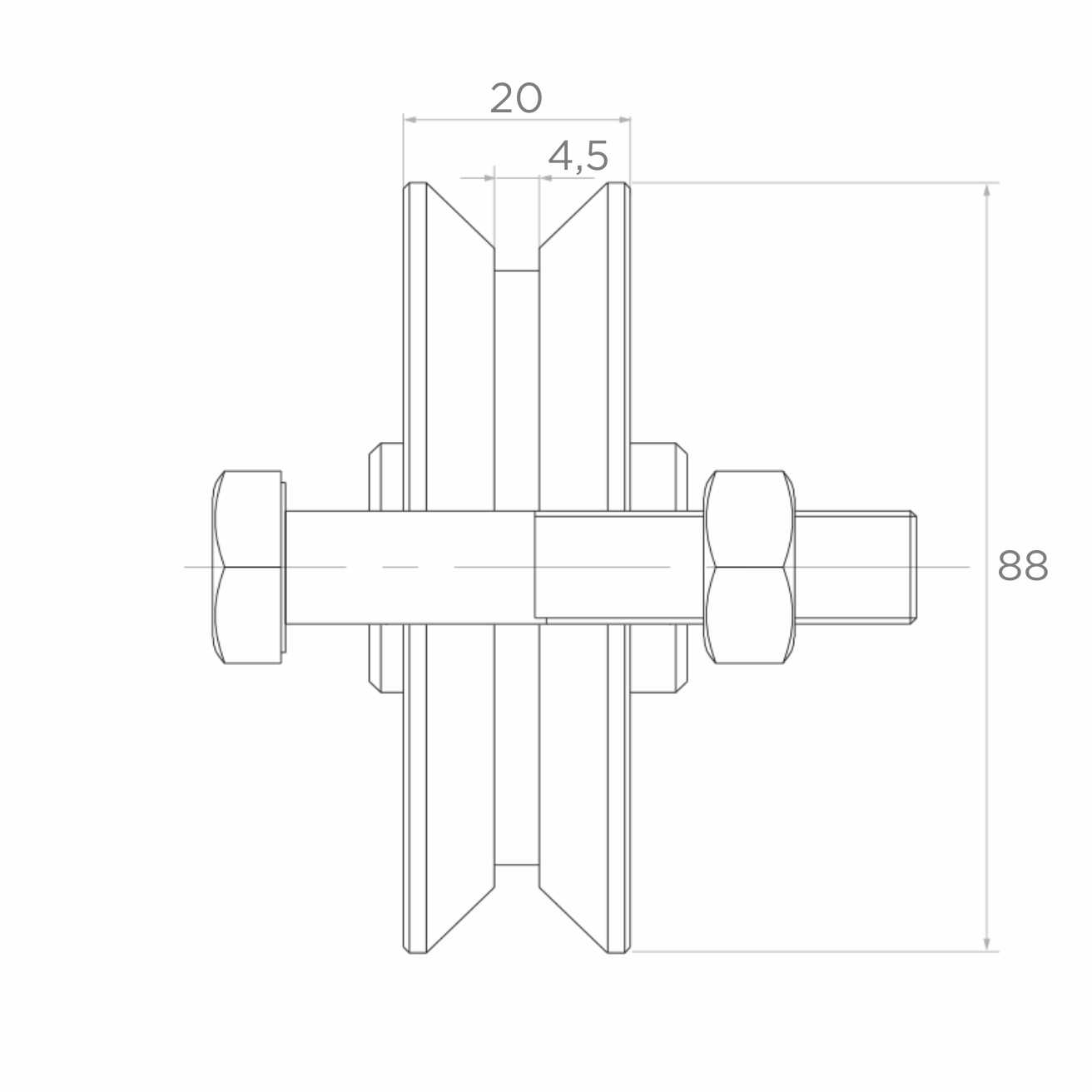 Galet de roulement portail type V PSG ø 88 mm galvanisé – capacité 250 kg