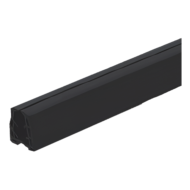 Le produit est vendu en segments de longueur 2500 mm (2,5 m), ce qui facilite la découpe précise sur mesure et minimise les déchets de matériau sur le chantier. La couleur noire du joint assure un aspect discret et esthétique une fois monté dans la main courante.