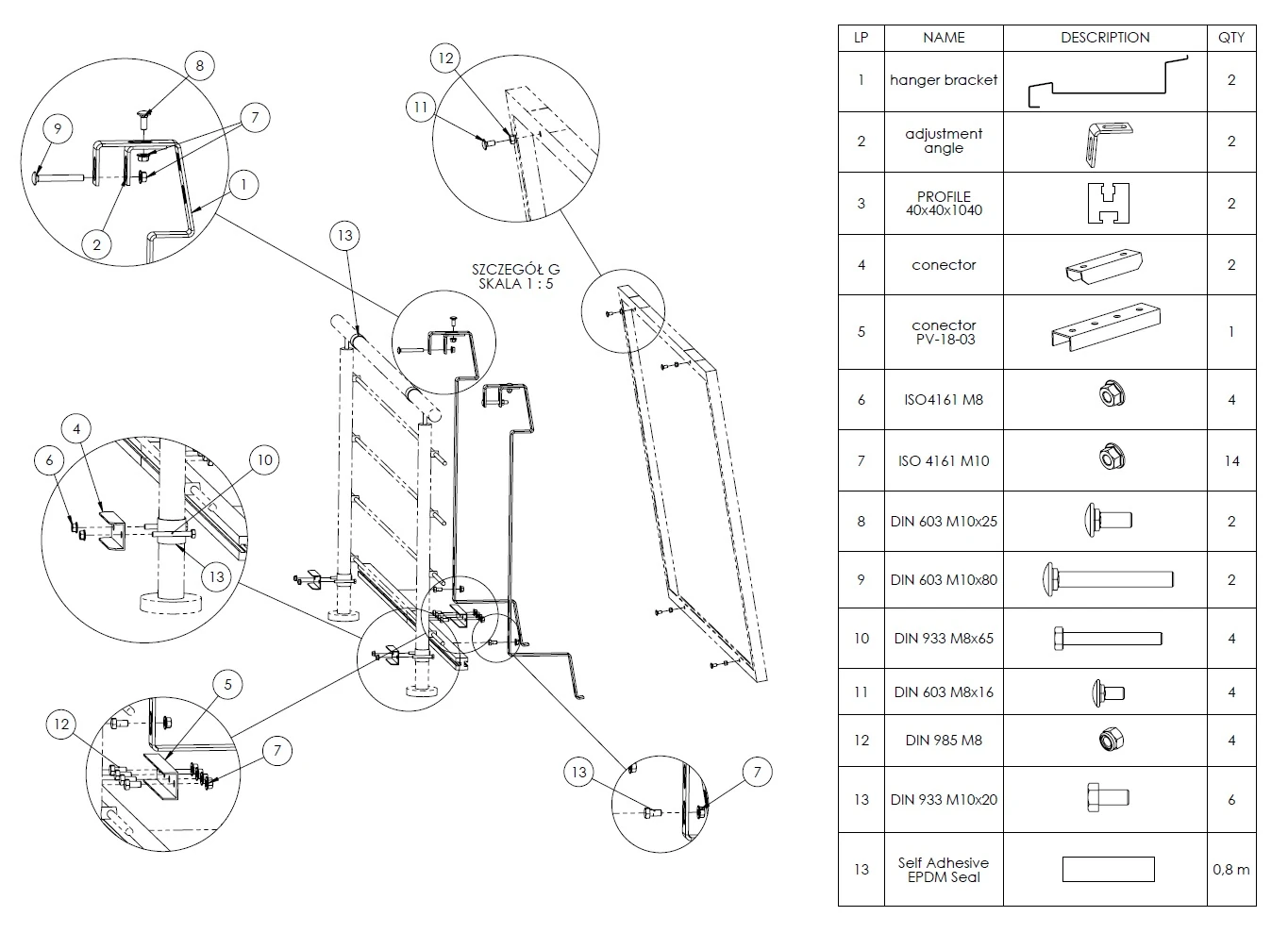 Kit de montage photovoltaïque Balus 1 pour balustrade de balcon acier inoxydable H17 aluminium 6060 max 1052mm