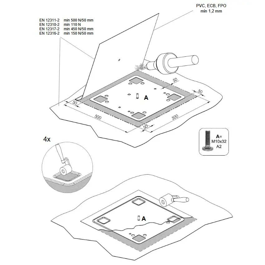 Kit de vis 32mm et joints pour plaque de fixation et support "Z" CWL pour systèmes photovoltaïques.
