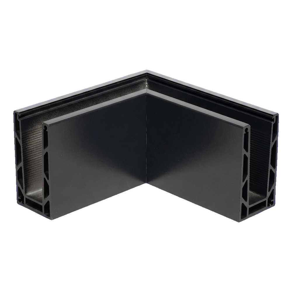 Le profil U d'angle de type KE 100 de la marque Kozza est un élément destiné à la finition des angles extérieurs 90° dans les balustrades entièrement vitrées montées par le haut. Les bras symétriques d'une longueur de 197 mm assurent une connexion précise de deux panneaux de verre à angle droit — sans décalages ni fentes, en maintenant une ligne uniforme du profil et du verre dans un même plan.