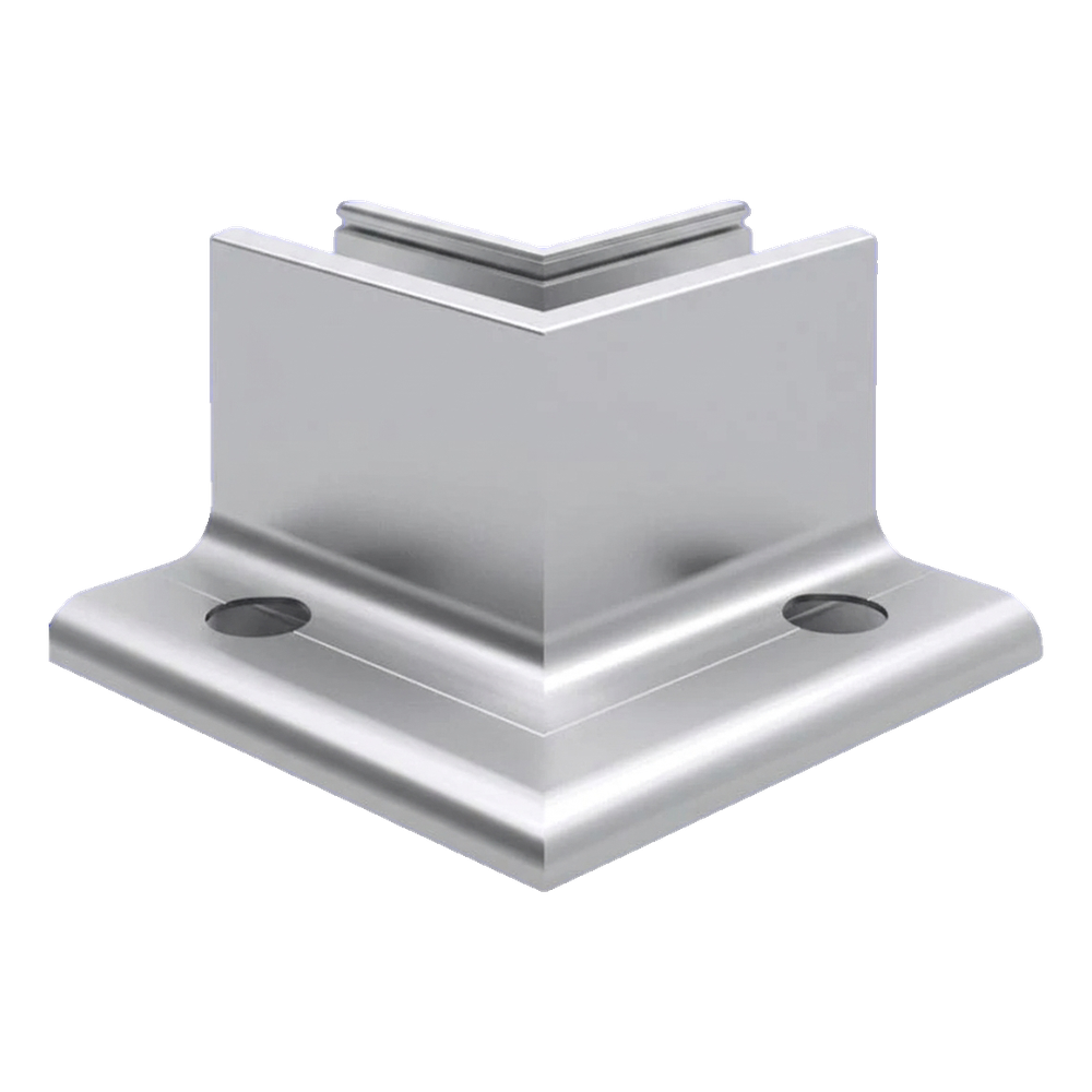 Le profilé est destiné à la réalisation de balustrades tout verre aux endroits où deux panneaux de verre se rencontrent à angle droit dans un angle intérieur. Le montage longitudinal par le haut permet l'installation du profilé sur un support fini — il suffit de visser la base au sol par deux trous de montage dans le pied du profilé, puis d'insérer les panneaux de verre dans la fente supérieure. Cette solution est particulièrement appréciée par les équipes d'installation pour la simplicité et la répétabilité du montage.
