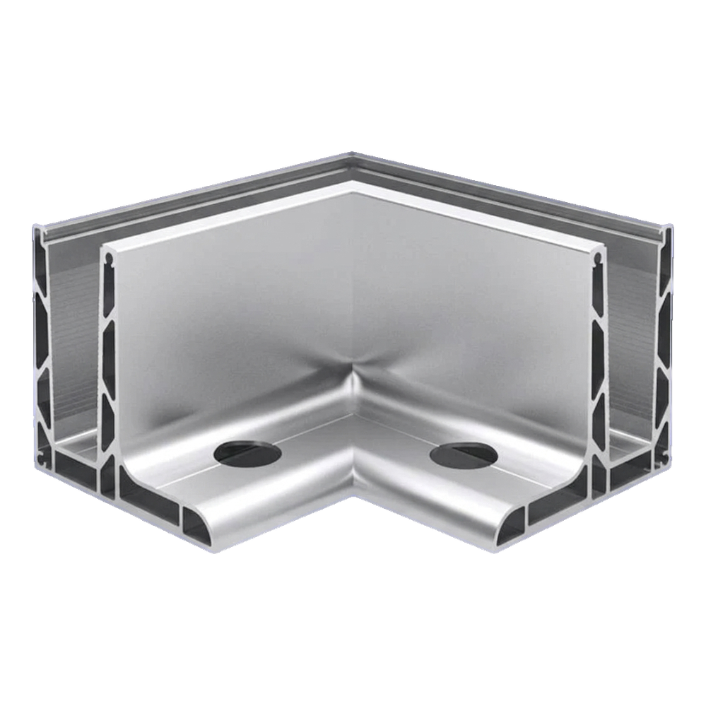 Le profilé en L d'angle 90° Kozza KE 105 est un élément de construction destiné à la construction de garde-corps tout verre en système plat. Le profilé sert à raccorder deux panneaux de verre à angle droit dans les angles extérieurs, assurant une connexion rigide et esthétique sans éléments de fixation visibles côté façade.