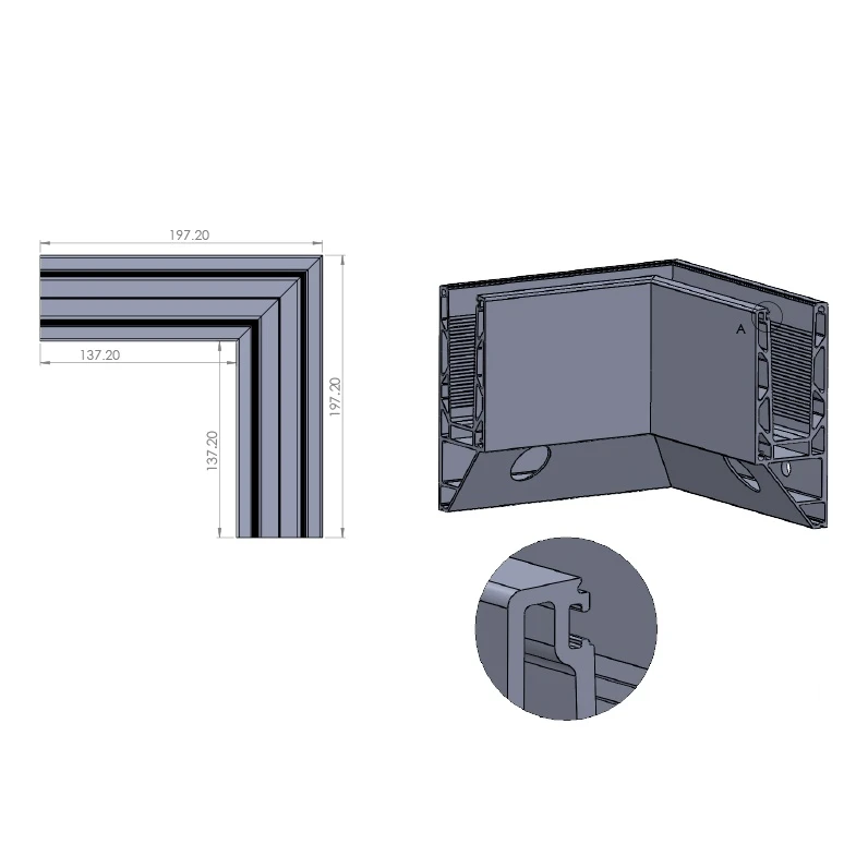 Le profilé est fabriqué en aluminium avec finition anodisation mate, ce qui garantit une haute résistance à la corrosion et un aspect élégant et discret qui s'harmonise avec les façades modernes. La fixation latérale permet le montage directement au mur ou au poteau de structure, ce qui simplifie considérablement le processus d'installation et offre plus de flexibilité de conception que les systèmes à fixation au sol.