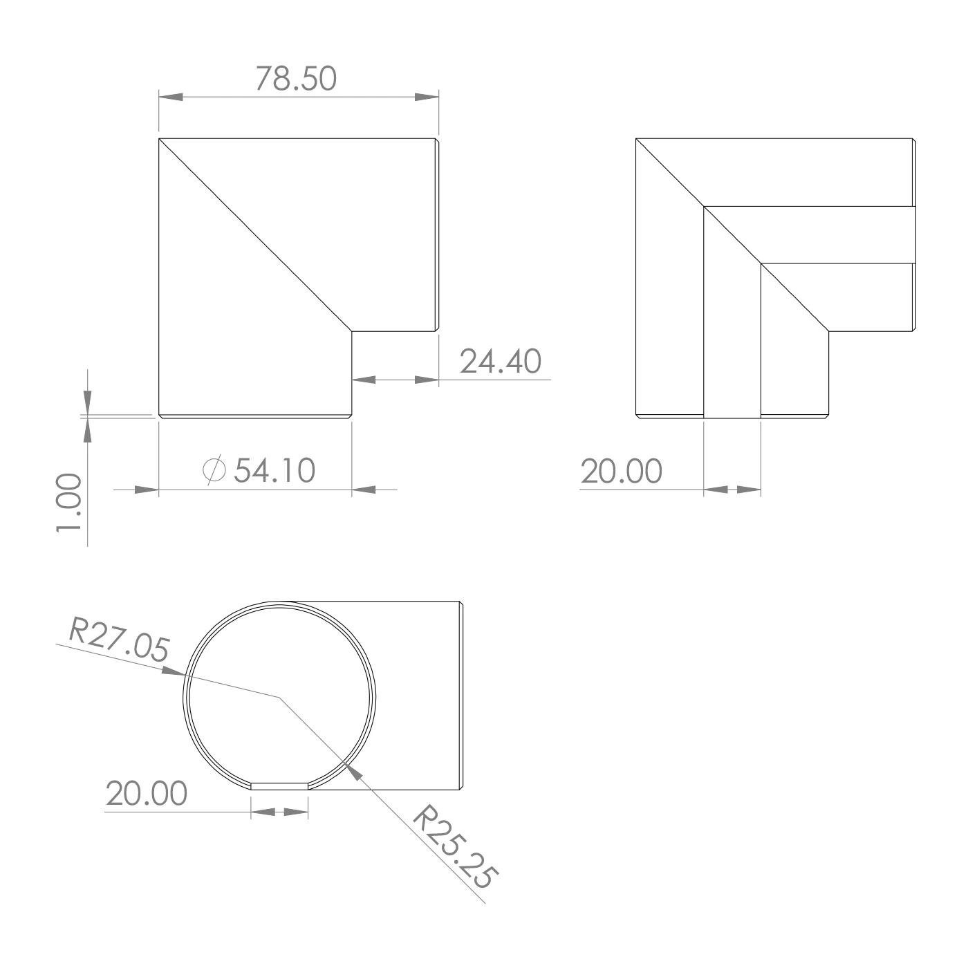 Le coude 90° Kozza est un raccord d'angle de précision conçu pour la construction de systèmes de rampes et balustrades avec des mains courantes rondes en aluminium de diamètre ø 40 mm. Il permet une connexion esthétique et stable de deux sections de main courante à angle droit — parfait pour les angles d'escaliers, terrasses, balcons et mezzanines.