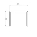 Le profilé à section rectangulaire 30,1 × 25 mm assure un positionnement stable sur le bord du verre et une prise ergonomique. La longueur de fabrication 5000 mm permet une découpe pratique et un ajustement aux dimensions du projet spécifique sans déchets excessifs.