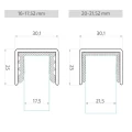 Grâce au système de joints d'étanchéité interchangeables, la main courante est compatible avec des verres d'épaisseur 16–17,52 mm ainsi que 20–21,52 mm. Le choix de la variante s'effectue en montant le joint d'étanchéité approprié — pour le verre plus fin ou pour le plus épais. Cette approche augmente considérablement la polyvalence du produit et élimine la nécessité d'acheter des profilés séparés pour différents projets.
