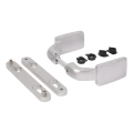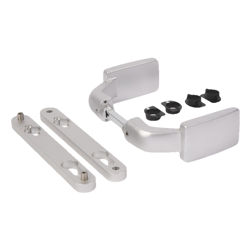 Le kit comprend : poignée double face avec prise, deux plaques de montage (avec trou pour insert à barillet et sans), entretoises pour régler l'épaisseur du profilé et vis de fixation. L'ensemble est prêt au montage sans nécessité de sélectionner des éléments supplémentaires.
