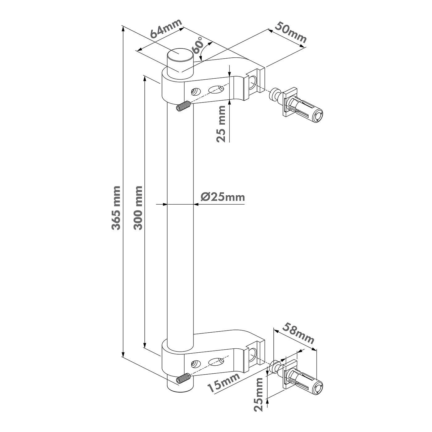 La poignée est destinée au montage simple face et conçue pour fonctionner avec le modèle 3025-HYB-BLIND. Elle est disponible en version avec fixation droite ou courbée, ce qui permet de l'adapter à différents types de profilés et poteaux de portail. La construction avec supports montés sur chevilles d'expansion type Quick-Fix assure une installation rapide et stable sans nécessiter d'outils spécialisés supplémentaires.