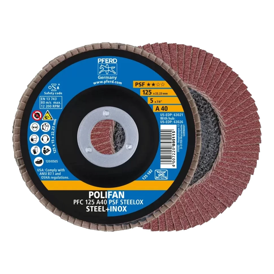 PFERD POLIFAN PFC 125 A40 PSF STEELOX – disque à lamelles pour acier et INOX