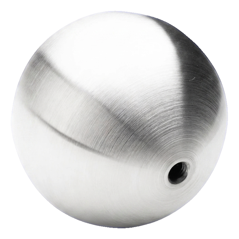 La construction creuse de la boule assure un poids faible (0,44 kg) tout en maintenant la rigidité et la durabilité. L'épaisseur de paroi de 2 mm garantit une résistance mécanique suffisante pour les applications de balustrades, tout en conservant une masse réduite de l'élément — ce qui est important pour les grandes commandes et le transport.