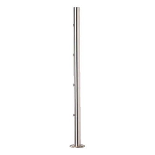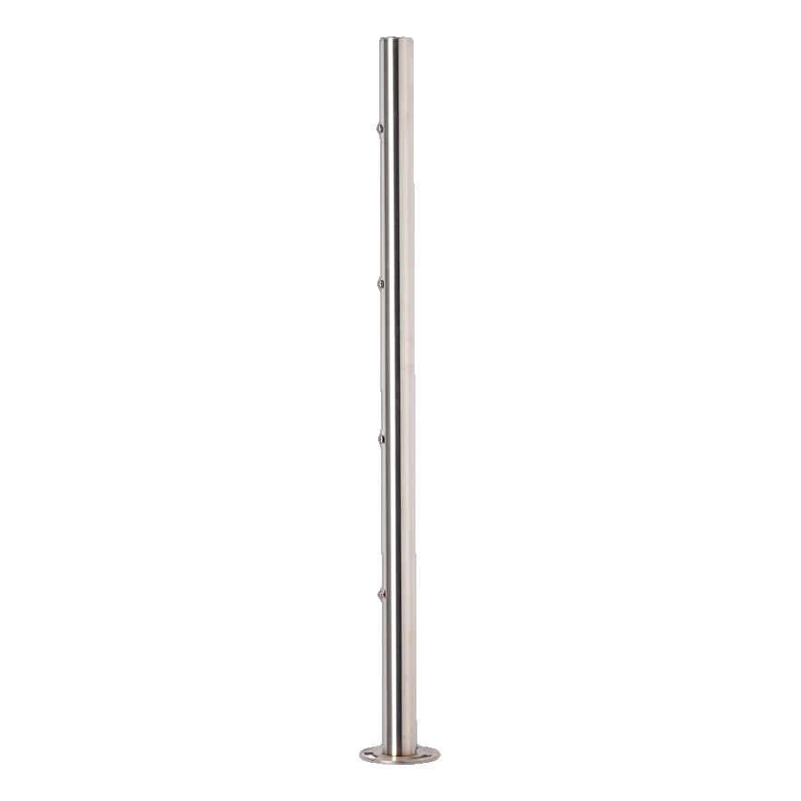 L'acier inoxydable AISI 304 assure une haute résistance à la corrosion et aux conditions atmosphériques, permettant au poteau de convenir aussi bien à l'intérieur des bâtiments qu'à l'extérieur — sur les balcons, terrasses ou cages d'escalier. La finition satinée de la surface confère au produit un aspect moderne et mat qui se marie parfaitement avec les autres éléments des systèmes de balustrades.