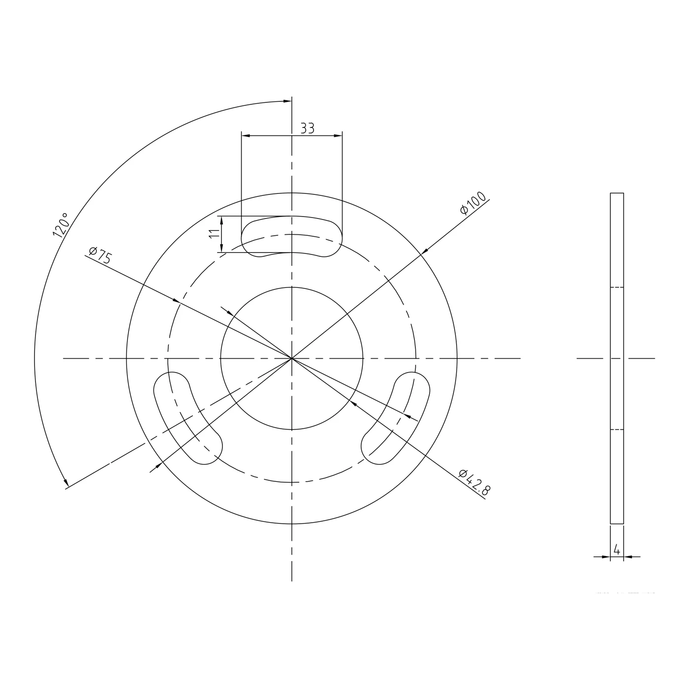 - Diamètre de répartition des trous oblongs : ø75 mm