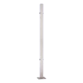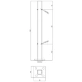 Le poteau est destiné à être fixé directement au sol au moyen d'une plaque de base soudée de dimensions 105×105 mm. Quatre trous de montage ovales (haricots) dans la base permettent un réglage précis de la position lors de l'installation, ce qui accélère considérablement les travaux de montage et élimine les erreurs.