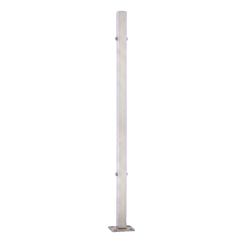 L'acier inoxydable AISI 304 est destiné principalement à l'utilisation à l'intérieur des bâtiments. Avec un nettoyage régulier et l'utilisation de produits de protection dédiés, le poteau peut être monté avec succès également à l'extérieur — à l'exception de l'environnement des piscines, bassins et terrains exposés à l'action directe du sel marin. La finition satinée facilite l'entretien quotidien et est plus résistante à la visibilité des salissures que la surface polie.