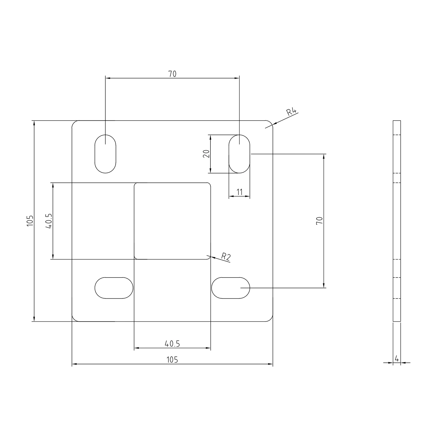 - Plaque de base : 105×105×4 mm