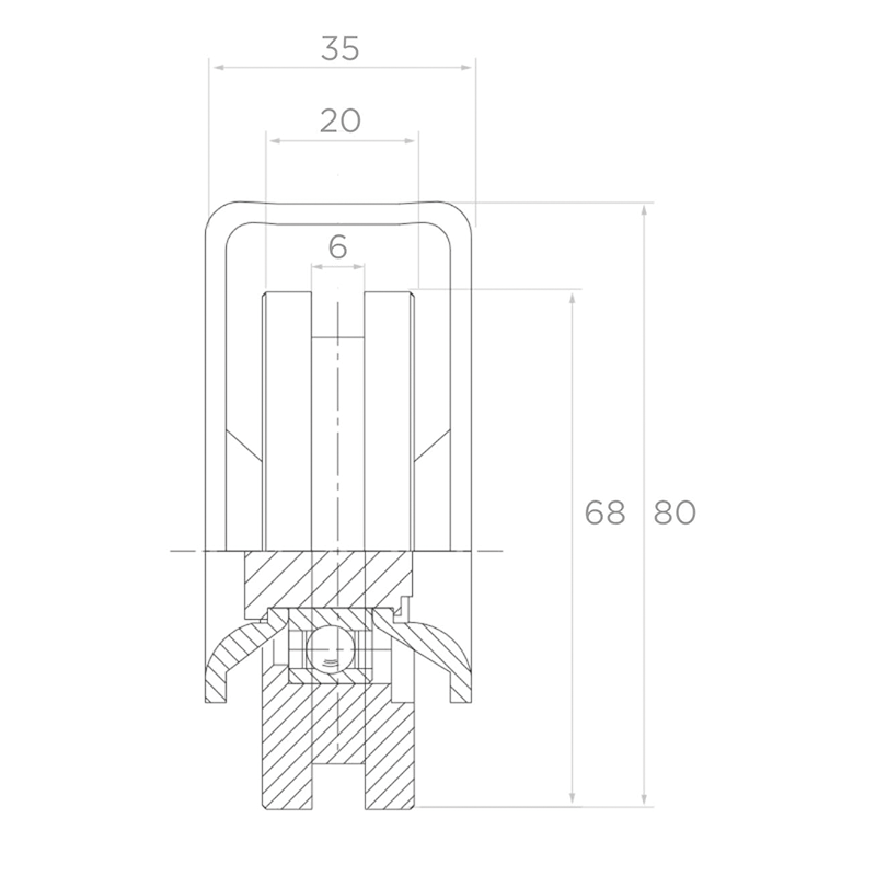 Le galet est dédié à la coopération avec un rail en profilé T — le profil de rainure en forme de T garantit un guidage sûr du vantail de portail et un fonctionnement stable sur toute la longueur de la voie de roulement. La charge maximale de 150 kg fait qu'il convient aussi bien aux portails à un vantail qu'aux portails plus légers à deux vantaux dans les installations de clôture.