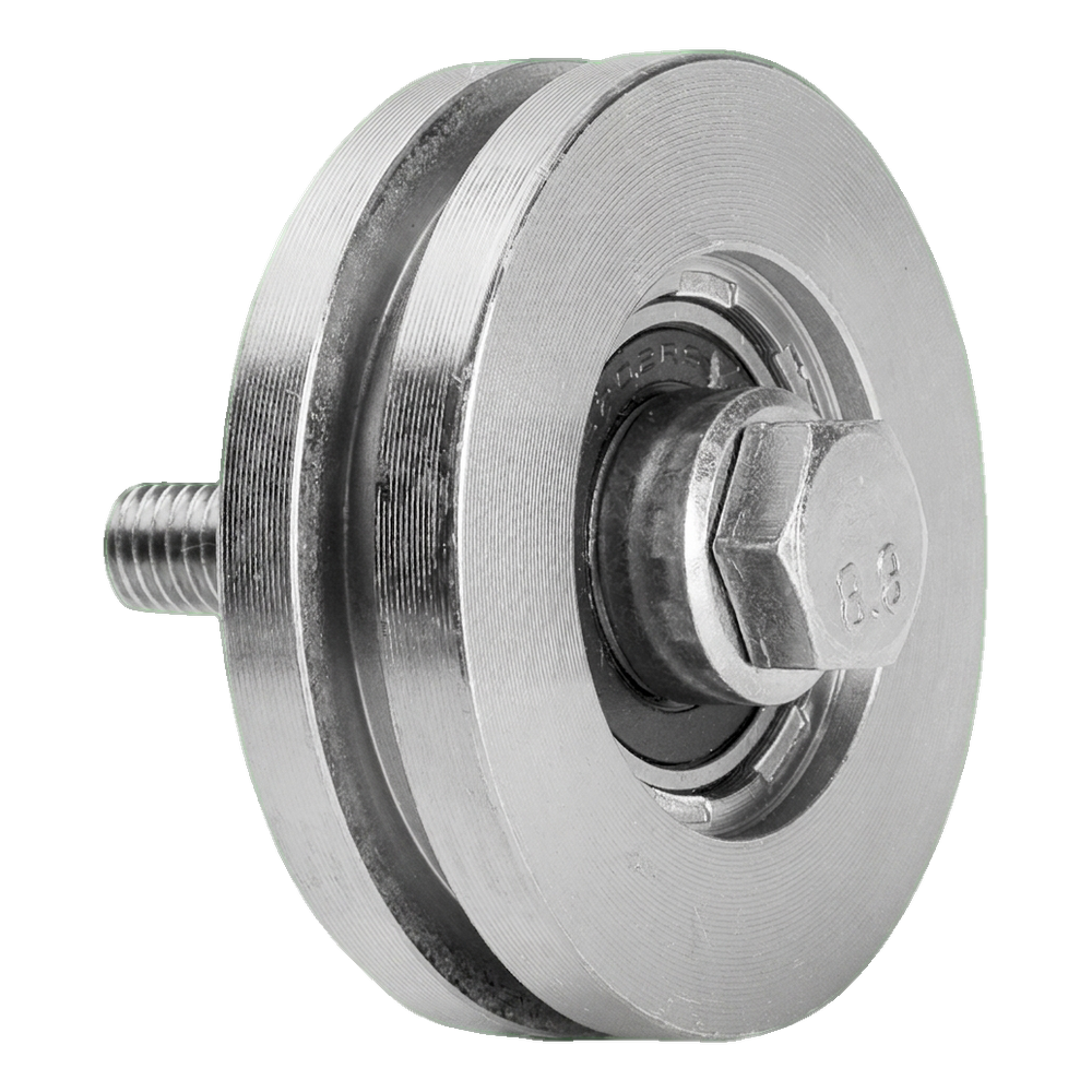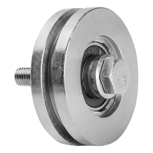 La rainure du profil 'T' d'une largeur de 7,7 mm assure un guidage précis du galet sur le rail IPN, éliminant les déviations latérales du vantail du portail. Grâce à sa surface galvanisée, le galet résiste à la corrosion et est conçu pour fonctionner en extérieur pendant de nombreuses saisons.