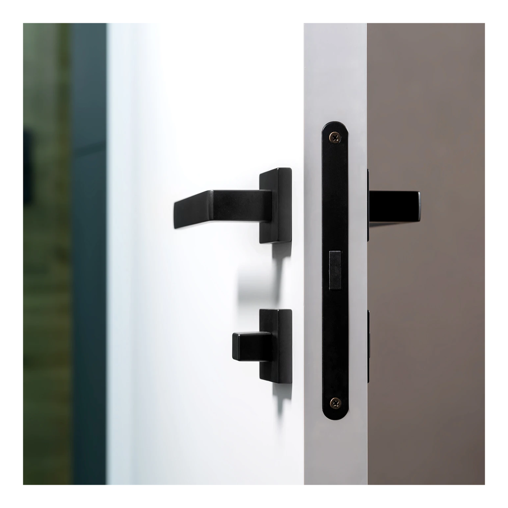 La poignée Genova convient partout où l'apparence moderne et la durabilité comptent — dans les appartements, les maisons individuelles, les bureaux et les bâtiments commerciaux. La finition noire mate est l'une des tendances les plus populaires dans la menuiserie de porte contemporaine. La forme simple et géométrique de la poignée et de la plaque convient aussi bien aux intérieurs industriels qu'aux intérieurs classiques. Le kit de montage complet permet une installation rapide sans avoir besoin d'acheter des éléments supplémentaires — solution idéale pour les entreprises réalisant des montages en série.