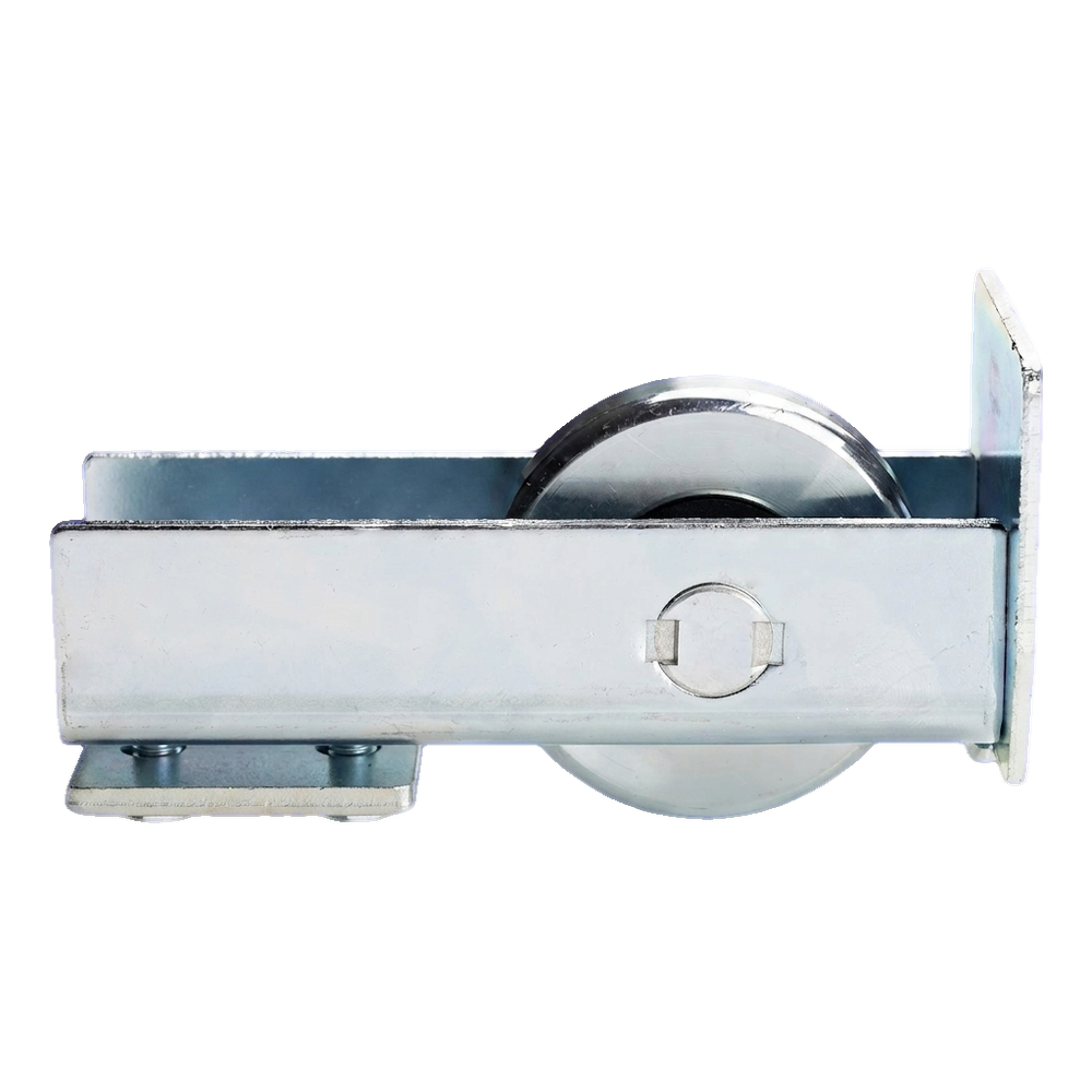 La roulette de guidage est montée au début du rail de roulement du portail coulissant et coopère avec le support de butée fixé sur le portail. Lors de la fermeture du portail, la roulette entre dans le support, reprenant une partie du poids du vantail et le stabilisant en position finale. Ceci est particulièrement important dans les systèmes de portails autoportants, où la bonne répartition des charges influence directement la durabilité des chariots de roulement ainsi que le fonctionnement fluide de l'entraînement. L'élément est inséré dans le profilé inférieur du portail et fixé avec les vis fournies — l'installation est rapide et ne nécessite pas d'outils spécialisés supplémentaires.