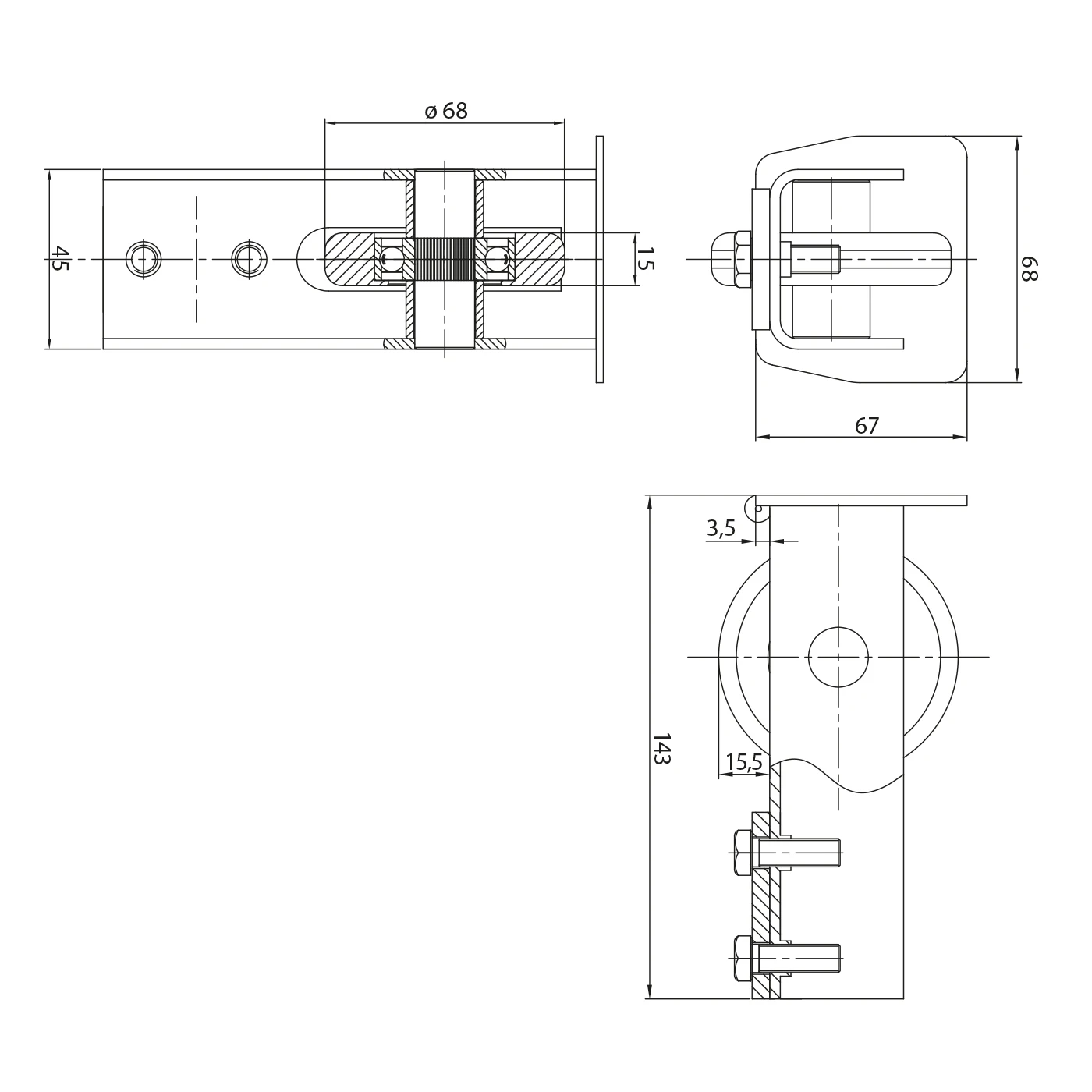 - Diamètre de la roulette : ø 68 mm
