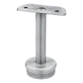 Le support est monté par enfoncement de la base moletée à l'intérieur du tube du poteau de balustrade. Le moletage sur le périmètre de la base assure un ancrage durable et stable dans le tube sans nécessité d'utiliser des éléments de fixation supplémentaires. La sellette sur le dessus est équipée de trous de montage permettant de visser la main courante. Cette solution est destinée aux sections rectilignes de balustrades — dans le cas de balustrades de balcon nécessitant un réglage de l'angle d'inclinaison de la main courante, il est recommandé d'utiliser des supports articulés.