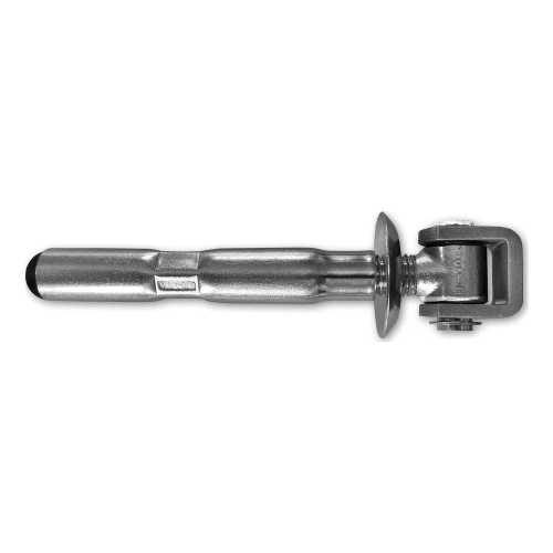 L'ancrage est destiné à être scellé ou collé dans les poteaux de clôture — en béton, pierre ou clinker. Le rétrécissement sur le corps d'ancrage est profilé de façon à assurer une connexion optimale avec l'ancrage chimique, ce qui garantit une haute capacité portante et une résistance aux charges dynamiques typiques des vantaux de portails et portillons. La rosace couvrant le point de montage assure un effet visuel propre et professionnel.