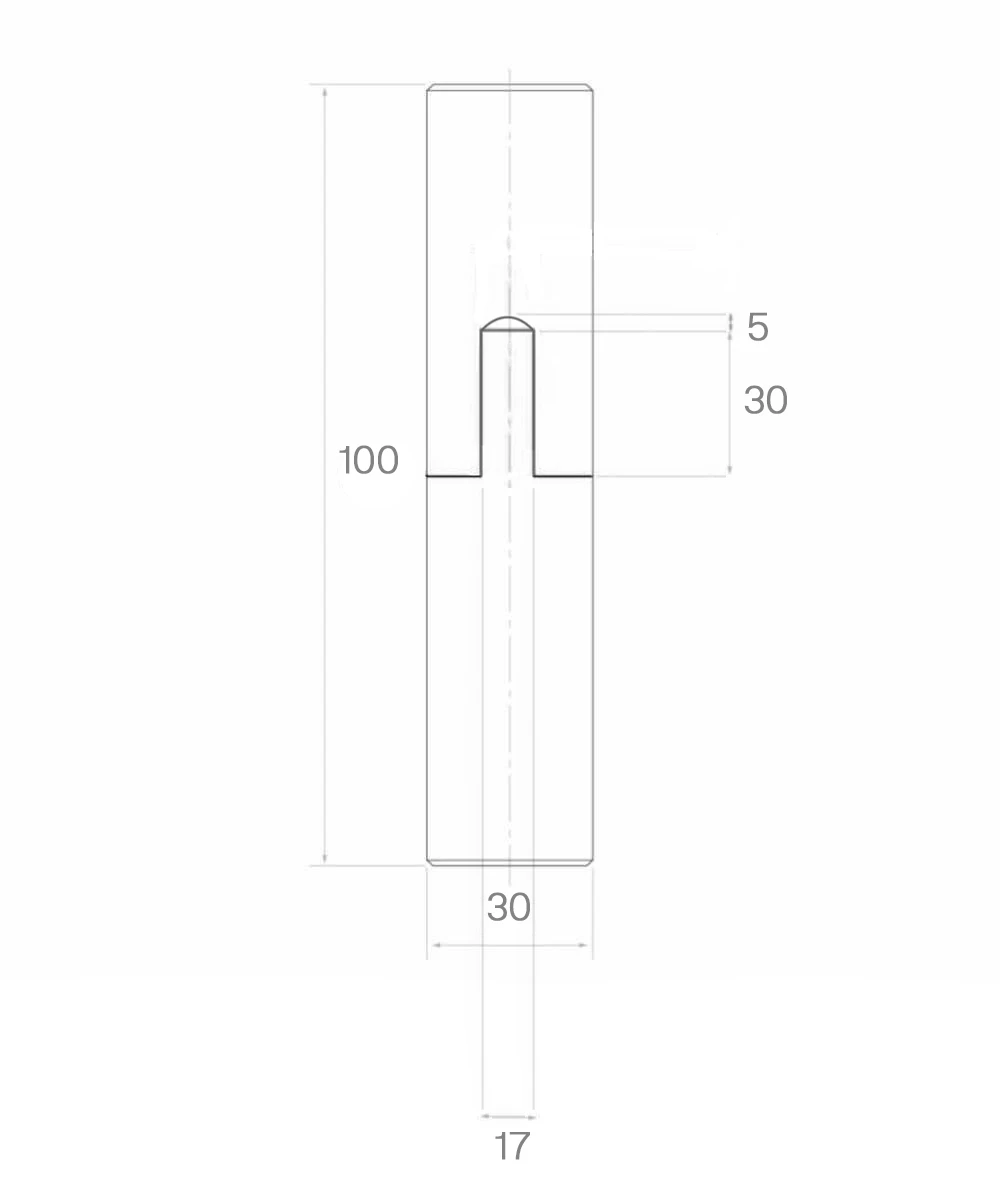 - Hauteur de la partie cylindrique de l'axe : 30 mm