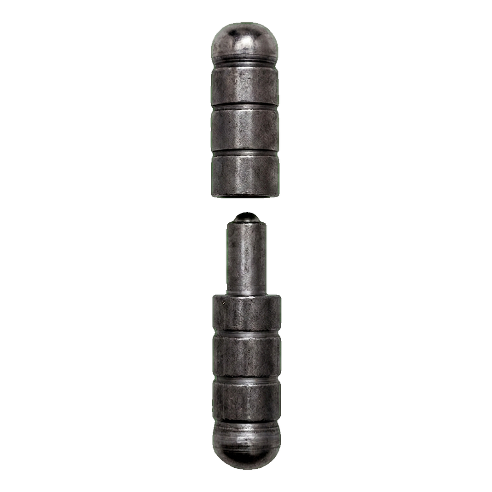 La charnière se compose de deux parties terminées par des boules décoratives, qui après soudage au portail et au poteau s'emboîtent l'une dans l'autre. La forme tournée assure un guidage stable et un fonctionnement fluide du vantail. La construction en acier garantit la résistance aux dommages mécaniques, aux déformations ainsi qu'à l'action des intempéries — la charnière convient aussi bien aux clôtures qu'aux portails d'entrée lourds.