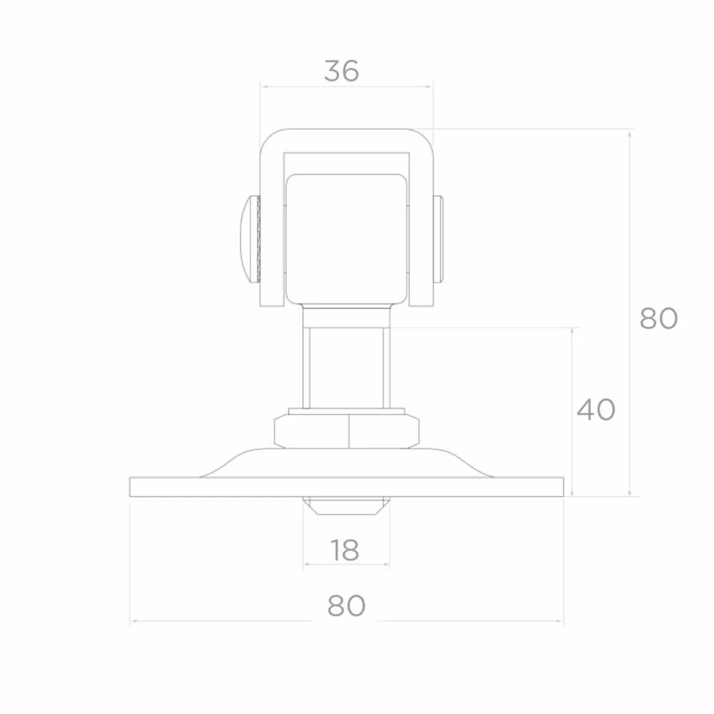 Charnière réglable en acier PSG avec vis M18 destinée au montage de portails battants et portillons. La plaque aux dimensions 80×80 mm avec quatre trous de montage assure une fixation stable et sûre au poteau. Grâce au réglage fileté, la charnière permet de niveler précisément le vantail du portail à tout moment — aussi bien lors du montage qu'après des années d'exploitation, lorsque la construction s'affaisse ou se déforme thermiquement.