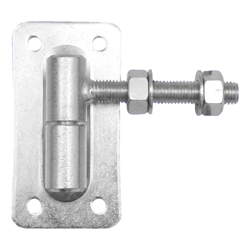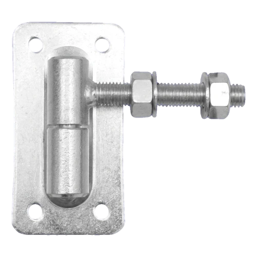 Charnière réglable roulée en acier avec rotule et plaque rectangulaire, conçue pour le montage professionnel de portails battants et de portillons. Construction roulée de diamètre ⌀ 30 mm avec filetage M18 garantit une haute résistance mécanique et un guidage précis. Grâce au réglage par écrou, vous pouvez corriger à tout moment la position du vantail — aussi bien lors du montage de la structure que lors de changements dimensionnels causés par les températures extrêmes.