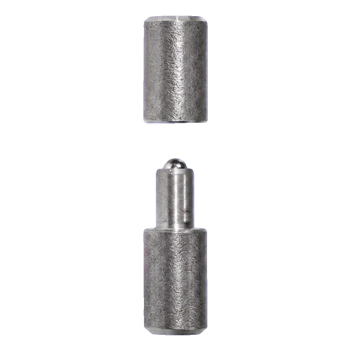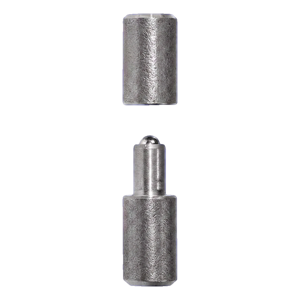 La charnière se compose de deux éléments roulés avec précision — la douille (partie supérieure) et l'axe à bille (partie inférieure). La bille en acier logée dans l'axe minimise la friction et assure un fonctionnement silencieux et régulier de la charnière pendant toute sa durée d'exploitation. Le roulage CNC garantit la répétabilité des dimensions et l'ajustement précis des deux parties.