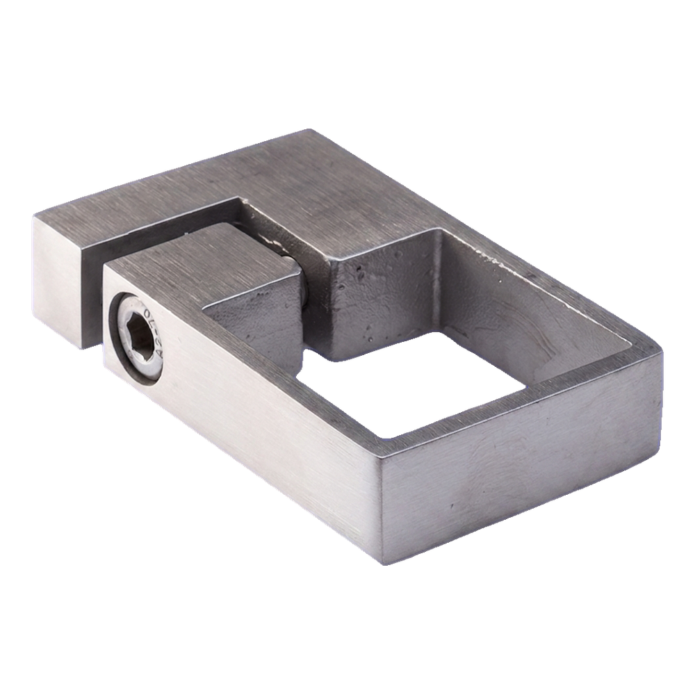 Collier de serrage pour fixation latérale de poteau de balustrade de profil 40×40 mm. Élément destiné au montage dans un mur, limon d'escalier ou autre surface verticale — assure un support stable du poteau de balustrade de balcon, terrasse ou escalier. Fabriqué en acier inoxydable AISI 304 avec finition satinée, ce qui garantit une haute résistance à la corrosion et un aspect esthétique et moderne.