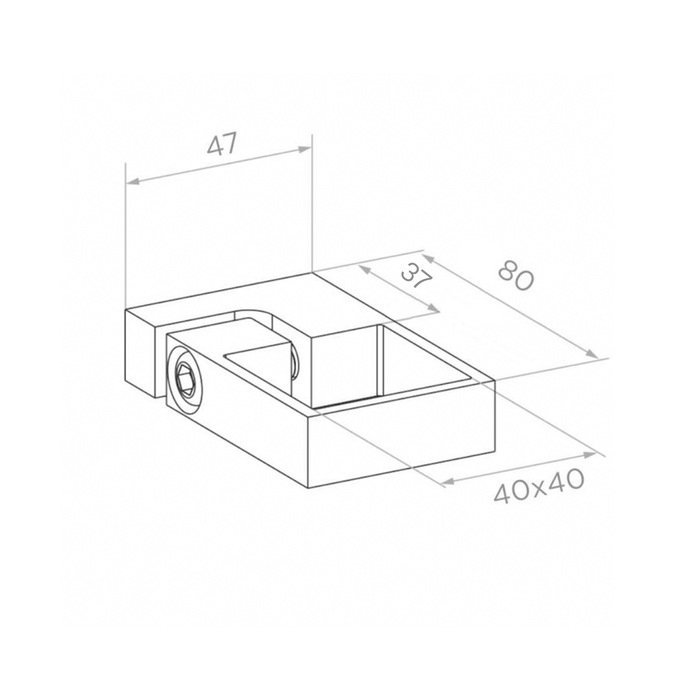 - Dimension du trou pour le profilé : 40×40 mm