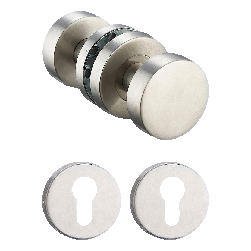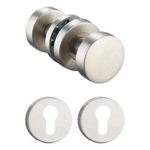 L'ensemble poignée-poignée PSG est un ensemble complet de ferrures de porte prêt à installer en acier inoxydable AISI 304, destiné aux portes intérieures dans les bâtiments résidentiels, de bureaux et publics. Les poignées mobiles d'un diamètre de 50 mm combinées à des plaques rondes pour cylindre (PZ) garantissent une finition esthétique et durable des portes, tandis que l'acier inoxydable assure une résistance à la corrosion et à l'utilisation intensive pendant de nombreuses années.