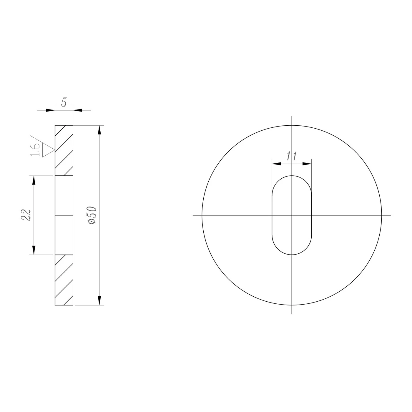 - Trou de montage (oblong) : 22 × 11 mm