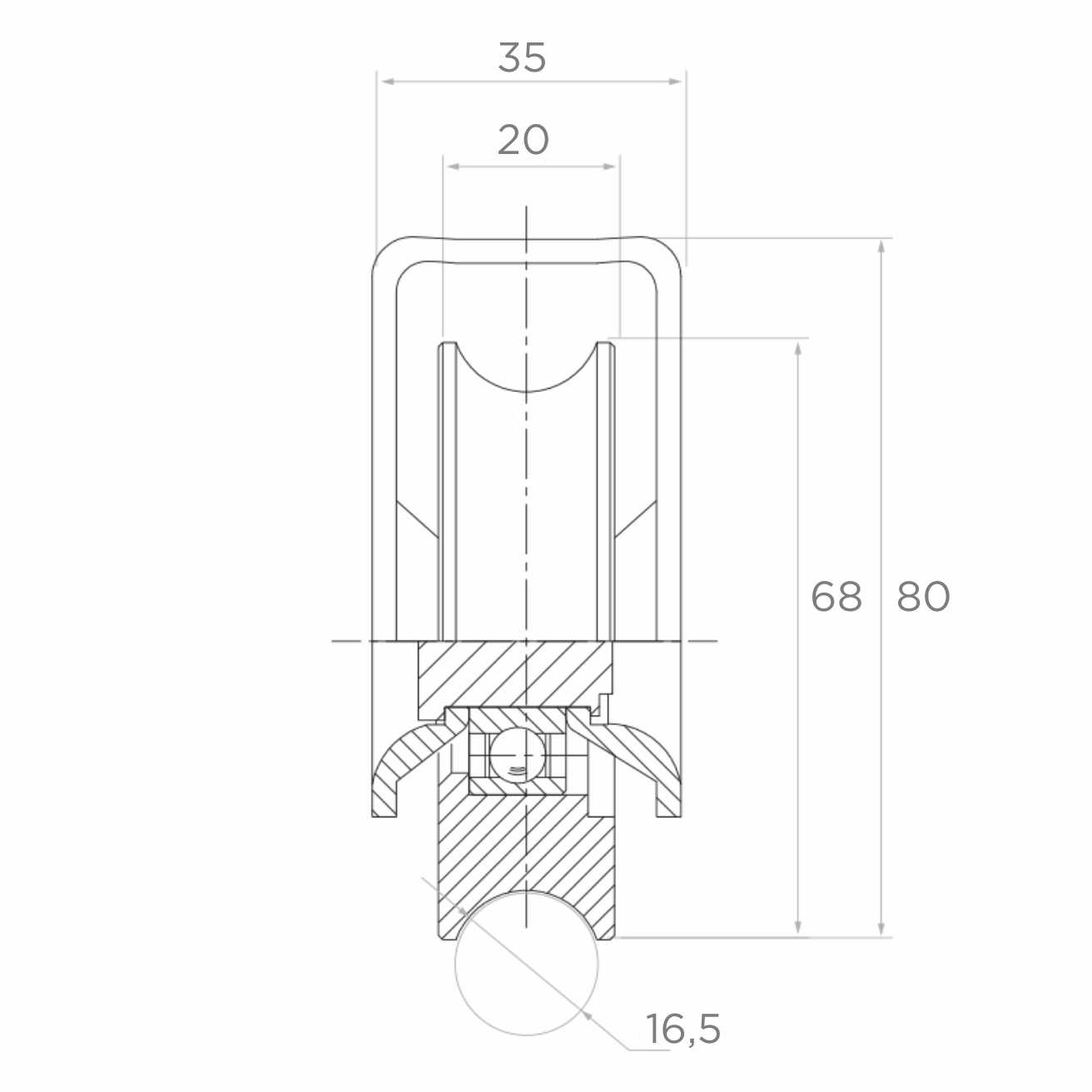 PSG galet de portail type 'O' Ø 68 mm pour rail rond – 150 kg